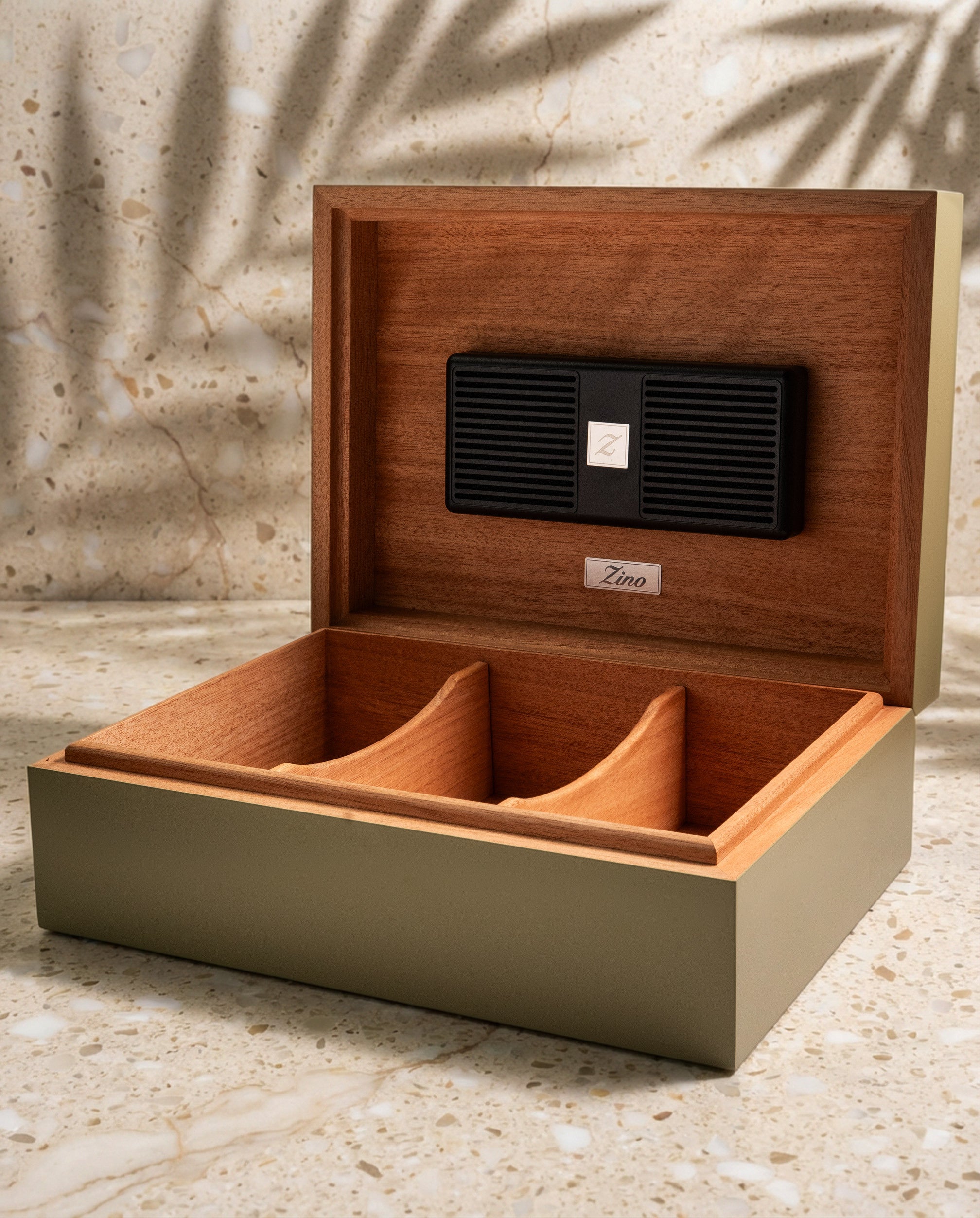새롭게 단장한 Z-콜렉션의 일환인 지노 Z60 휴미더 그린은 대담한 미학과 타협하지 않는 품질을 동시에 추구하는 현대적인 애호가를 위해 설계되었습니다. 활기찬 매트 마감의 우드 외관과 매끄러운 건축학적 라인을 갖춘 이 휴미더는 사무실이나 라운지 어디에서나 시선을 사로잡는 스테이트먼트 피스(Statement piece)가 될 것입니다.