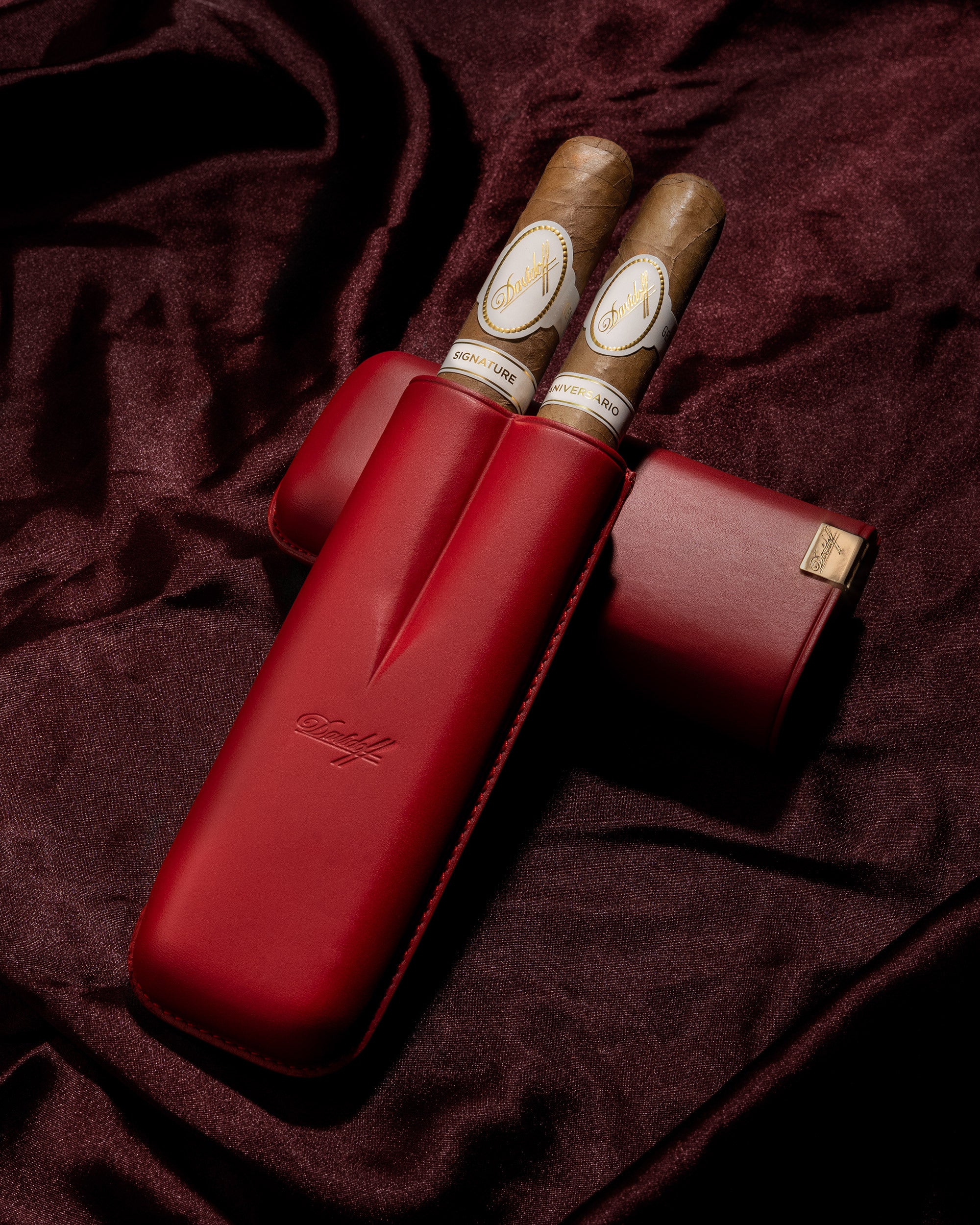 다비도프 아이코닉 시가 케이스 (XL-2/빨간색가죽 - 골드) + 시가 2개